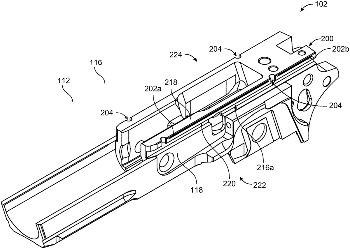 A firearm with a slide and a frame. The slide has a slide rail. The frame has a frame rail. The frame rail interfaces with the slide rail. The frame rail has a lubrication groove and a debris removal port. The lubrication groove extends along a surface of the frame rail that bears against the slide rail during operation of the firearm. The debris removal port has gap within the frame rail proximate to an end of the lubrication groove.