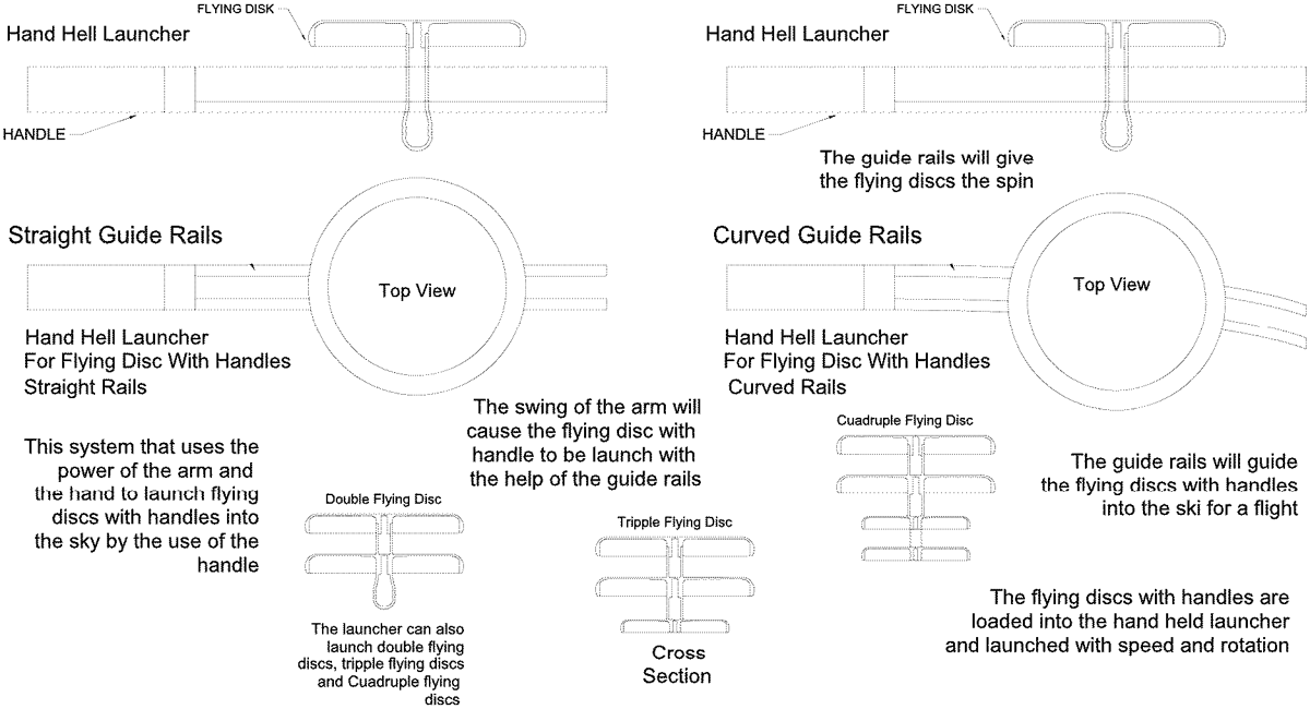 This invention is a type of flying disc. It has very special features that makes it unique and an innovation. To the flying disc part one can add a handle, thus, making it a flying disc with a handle protruding downwards from the center of the flying disc part. To this flying disc with a handle, one can add many features like: an overhang, a dome, lights, sound devices, solar panels, computer, buttons, light sensors, speakers, TV screen, meteorological instruments, remote control, drone capabilities, flaps, wings, propellers, etc. Also, this flying disc with a handle rotates like a top on various surfaces. Thus, it is a flying disc and a top in one. To the flying disc with a handle, one can add or take off parts, like extensions, handle, and flying disc parts to create bigger or more interesting flying discs, as shown in the drawings.