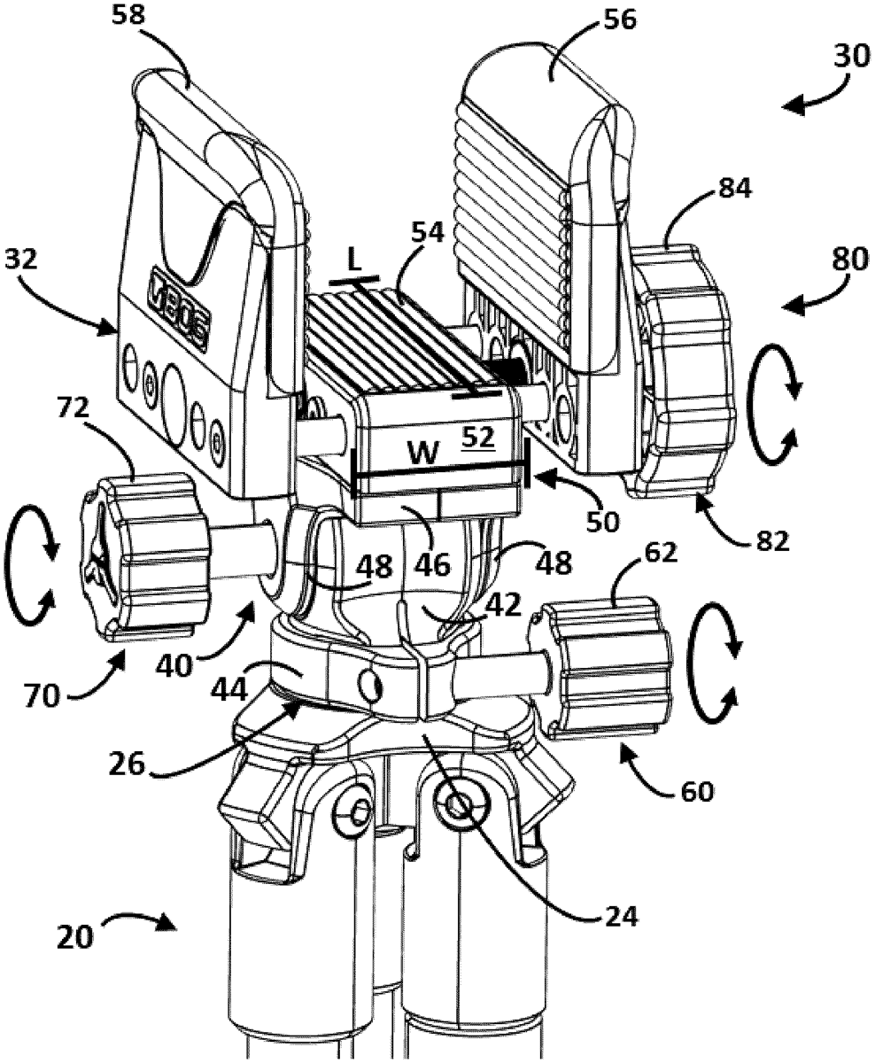 A weapon support and associated components and methods. The weapon support includes a frame including one or more legs, and the weapon support includes a weapon support head supported by the frame. The weapon support head includes a cradle including first and second jaws configured to selectively clamp the weapon. The cradle can be pivoted relative to the frame to adjust an aim of the weapon relative to the frame.