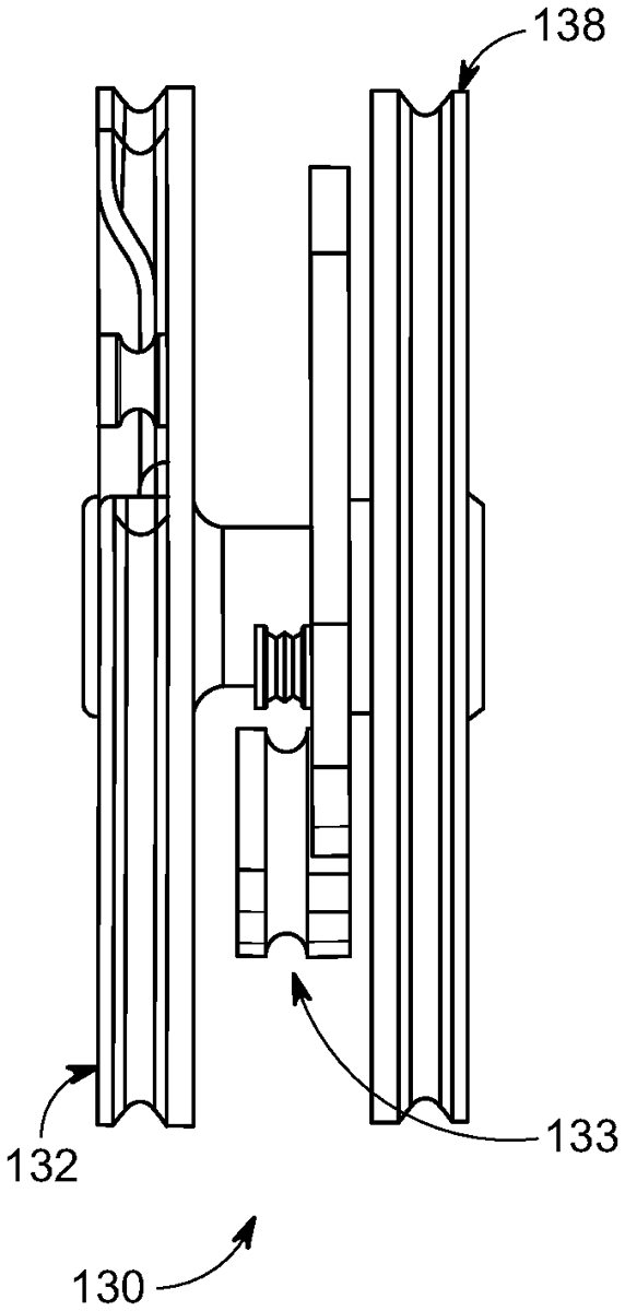 A crossbow includes a flexible limb with a first end coupled to a frame and a second end. The crossbow includes a draw string that is configured to move between a released position and a drawn position. The crossbow includes a pulley assembly with a lever arm rotatably coupled to the flexible limb and configured to rotate about a lever arm axis. The pulley assembly includes a pulley rotatably coupled to the lever arm and configured to rotate about a pulley axis that is spaced apart from the lever arm axis by a fixed distance. The pulley includes a first and second draw string grooves. The draw string is received by the first and second draw string grooves. The lever arm and the pulley are each configured to rotate in a first direction as the draw string is moved from the released position to the drawn position.