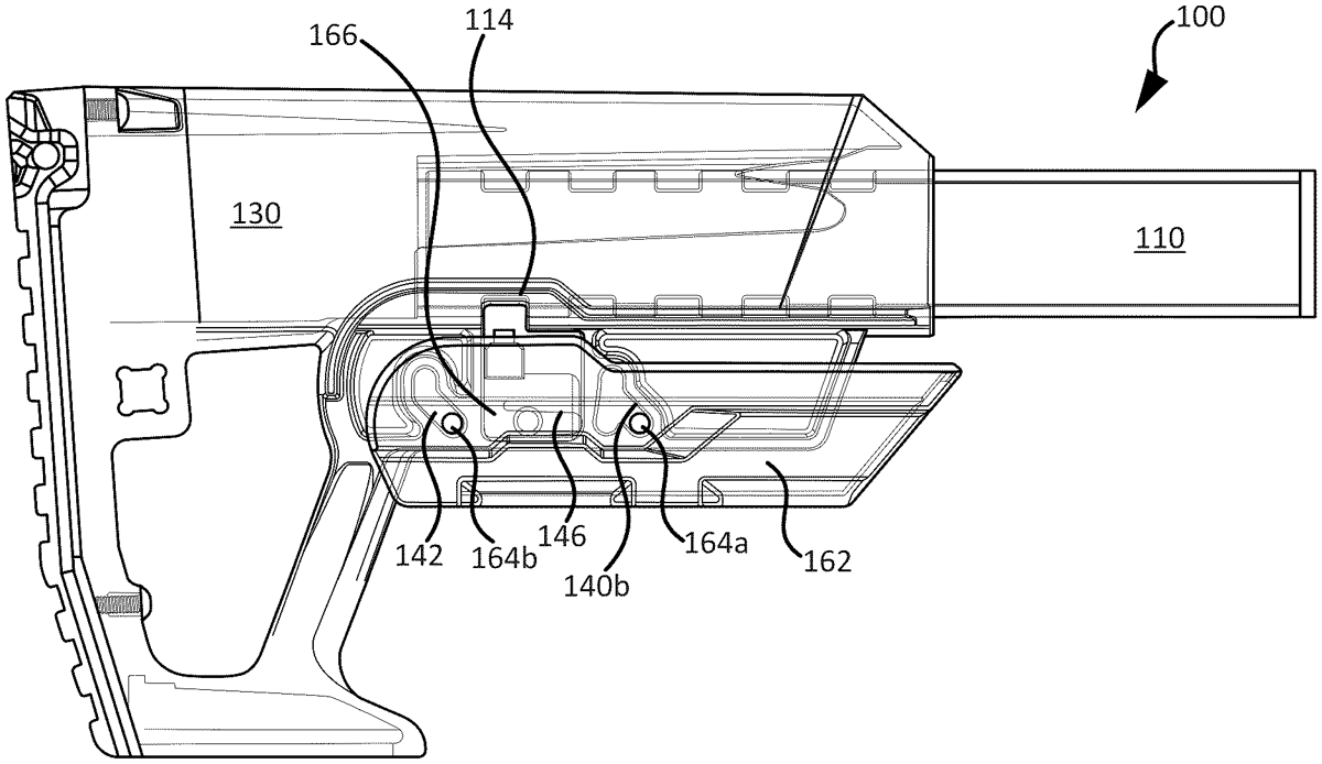 A firearm stock includes a stock body slidably mounted on a beam. A lever attached to the stock body can be moved between a locked position and at least one unlocked position, where operating the lever moves a locking mechanism between locked and unlocked positions. For example, when the lever is in a first unlocked position, the locking mechanism permits longitudinal adjustment of the stock body along the beam. When the lever is in a second unlocked position the locking mechanism permits the stock body to be slidably removed from the beam. In one example, the lower portion of the stock body defines a plurality of cam pathways for pins that secure the lever to the stock body. Forward cam pathways permit either a pivoting movement about the rear pin or a downward and forward shifting movement.