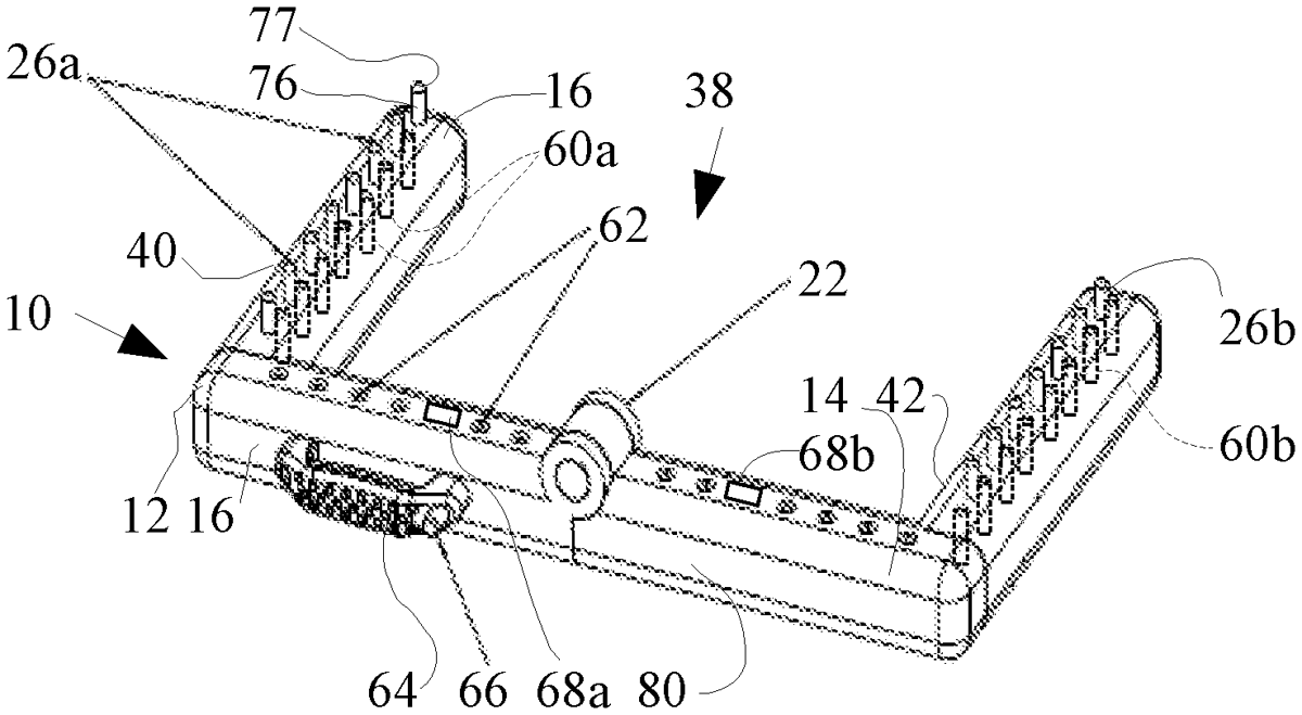 - A tire spiker comprising: a frame comprising a first and second spacer portion, the first spacer portion comprising a first top side, a first hinge end and a first spike end, the second spacer portion comprising a second top side, a second hinge end and a second spike end, the first hinge end pivotally attached to the second hinge end whereby the first and second spacer portions are movable from a carry configuration to a deployed configuration; a first and second spike portion, the first spike portion comprising a first spike side, a first spacer end and a first distal end, the second spike portion comprising a second spike side, a second spacer end and a second distal end, the first spacer end attached to the first spike end, the second spike end attached to the second spacer end, a first spike chamber in the first spike portion, the first spike chamber opening on the first spike side, a second spike chamber in the second spike portion, the second spike chamber opening in the second spike side; and a first spike in the first spike portion and a second spike in the second spike portion, the first and second spikes each comprising a tip, the first spike disposed in a generally perpendicular orientation to and extending from the first spike side, the first spike tip spaced from the first spike side, the second spike disposed in a generally perpendicular orientation to and extending from the second spike side, the second spike tip spaced from the second spike side, the first spike disposed in the second spike chamber in the carry configuration, the second spike chamber adapted to receive the first spike, the second spike disposed in the first spike chamber, the second spike chamber adapted to receive the first spike. a frame comprising a first and second spacer portion, the first spacer portion comprising a first top side, a first hinge end and a first spike end, the second spacer portion comprising a second top side, a second hinge end and a second spike end, the first hinge end pivotally attached to the second hinge end whereby the first and second spacer portions are movable from a carry configuration to a deployed configuration; a first and second spike portion, the first spike portion comprising a first spike side, a first spacer end and a first distal end, the second spike portion comprising a second spike side, a second spacer end and a second distal end, the first spacer end attached to the first spike end, the second spike end attached to the second spacer end, a first spike chamber in the first spike portion, the first spike chamber opening on the first spike side, a second spike chamber in the second spike portion, the second spike chamber opening in the second spike side; and a first spike in the first spike portion and a second spike in the second spike portion, the first and second spikes each comprising a tip, the first spike disposed in a generally perpendicular orientation to and extending from the first spike side, the first spike tip spaced from the first spike side, the second spike disposed in a generally perpendicular orientation to and extending from the second spike side, the second spike tip spaced from the second spike side, the first spike disposed in the second spike chamber in the carry configuration, the second spike chamber adapted to receive the first spike, the second spike disposed in the first spike chamber, the second spike chamber adapted to receive the first spike.
