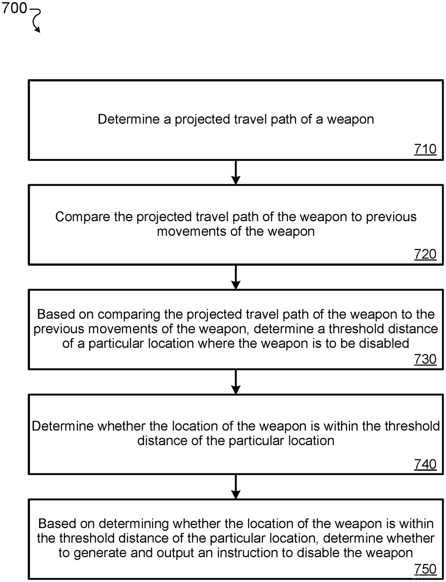 The patent describes a computer-implemented method for a weapon management system that determines the location of a weapon using wireless communication and signal strength. It includes generating instructions to capture data from nearby devices and to disable the weapon based on its determined location.