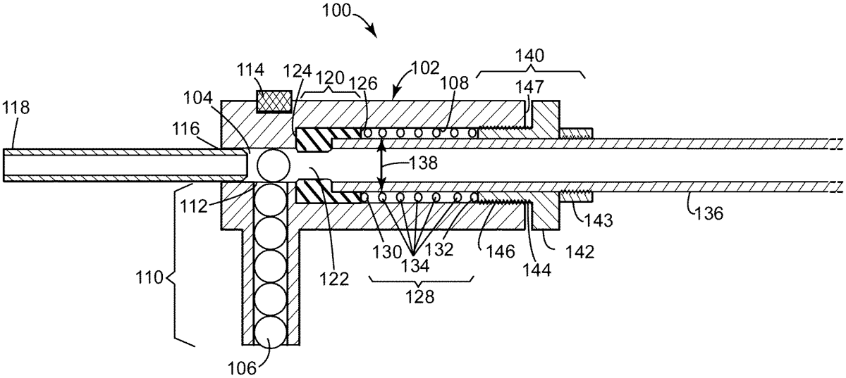 - A loading mechanism comprising: a housing comprising a loading chamber positioned adjacent to a housing passageway, the loading chamber operable to load ammunition therein; a resilient bucking disposed within the housing passageway, the bucking comprising a bucking passageway operable to receive ammunition transferred from the loading chamber; a spring having a plurality of spring coils, the spring disposed in the housing passageway and operable to apply pressure to the bucking when the spring is compressed; a gun barrel slidably positioned within the housing passageway, wherein the barrel of the air gun is positioned within an inner diameter of the spring; and a fastening mechanism operable to attach the gun barrel to the housing and to put the spring into compression; wherein, when the spring is compressed, pressure is applied to the bucking and the bucking passageway is collapsed inward to seal entirely around ammunition that is positioned within the bucking passageway. a housing comprising a loading chamber positioned adjacent to a housing passageway, the loading chamber operable to load ammunition therein; a resilient bucking disposed within the housing passageway, the bucking comprising a bucking passageway operable to receive ammunition transferred from the loading chamber; a spring having a plurality of spring coils, the spring disposed in the housing passageway and operable to apply pressure to the bucking when the spring is compressed; a gun barrel slidably positioned within the housing passageway, wherein the barrel of the air gun is positioned within an inner diameter of the spring; and a fastening mechanism operable to attach the gun barrel to the housing and to put the spring into compression; wherein, when the spring is compressed, pressure is applied to the bucking and the bucking passageway is collapsed inward to seal entirely around ammunition that is positioned within the bucking passageway.