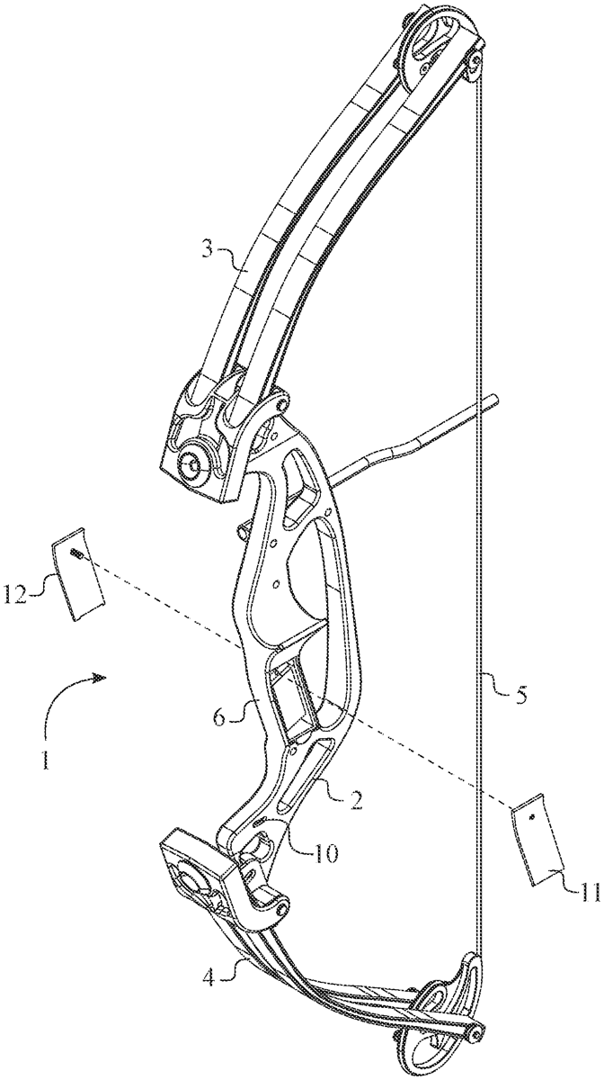 The patent describes a heated bow grip that incorporates a heating element within a channel in the grip, allowing for thermal energy transfer through two heat-conductive plates. This design enables the grip to be heated via an external power source connected to a power port integrated into the bow’s riser.