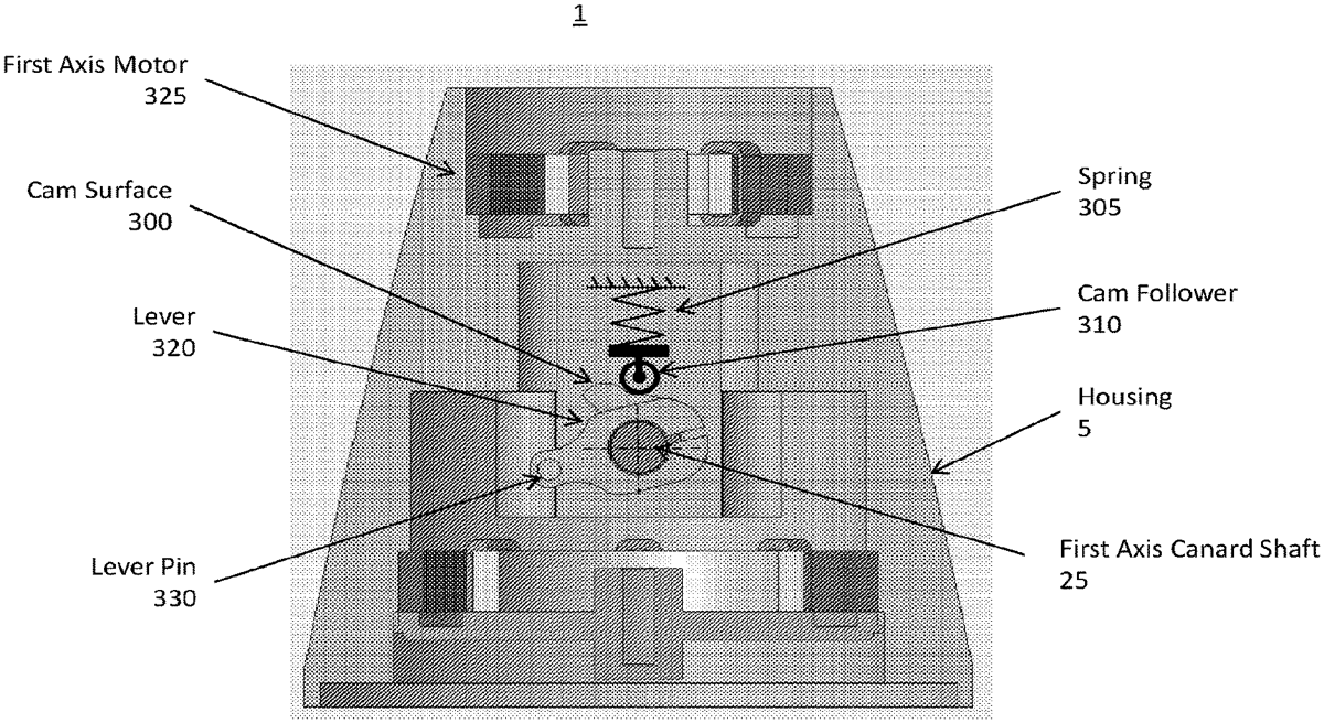 - An apparatus comprising: a drive source; a transmission path connected to the drive source, the transmission path comprising a plurality of components; an output shaft connected to the transmission path, at least one of the plurality of components or the output shaft having an extended section; a load, one end of the load being anchored and another end of the load being in contact with the extended section to provide a controllable torque over a range of angular motion of the at least one of the plurality of components or the output shaft; wherein the extended section comprising a cam, and the load comprises: a cam follower and a spring, the spring having a first end and a second end, the first end is anchored, the second end of the spring being connected to the cam follower or a linkage included in the load, where the cam follower contacts the cam surface and exerts a force on the cam surface, causing the controllable torque when the at least one of the plurality of components or the output shaft rotates and the cam follower contacts different portions of the cam surface; and wherein the plurality of components comprise: a drive screw having a first end and a second end, the first end connected to the drive source; a component having a first end and a second end, the first end of the component is connected to the second end of the drive screw via a connecting pin through a hole in the drive screw and a hole in the component; and a lever connected to the second end of the component via a connecting pin through a hole in the component and a hole in the lever, the output shaft extending through another hole in the lever, the lever configured to rotate in concert with the output shaft. a drive source; a transmission path connected to the drive source, the transmission path comprising a plurality of components; an output shaft connected to the transmission path, at least one of the plurality of components or the output shaft having an extended section; a load, one end of the load being anchored and another end of the load being in contact with the extended section to provide a controllable torque over a range of angular motion of the at least one of the plurality of components or the output shaft; wherein the extended section comprising a cam, and the load comprises: a cam follower and a spring, the spring having a first end and a second end, the first end is anchored, the second end of the spring being connected to the cam follower or a linkage included in the load, where the cam follower contacts the cam surface and exerts a force on the cam surface, causing the controllable torque when the at least one of the plurality of components or the output shaft rotates and the cam follower contacts different portions of the cam surface; and wherein the plurality of components comprise: a drive screw having a first end and a second end, the first end connected to the drive source; a component having a first end and a second end, the first end of the component is connected to the second end of the drive screw via a connecting pin through a hole in the drive screw and a hole in the component; and a lever connected to the second end of the component via a connecting pin through a hole in the component and a hole in the lever, the output shaft extending through another hole in the lever, the lever configured to rotate in concert with the output shaft.