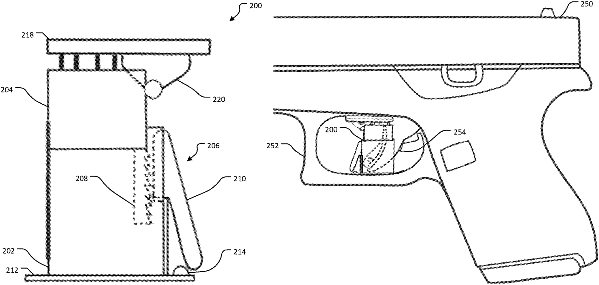 The patent describes a collapsible trigger block designed to shroud a firearm’s trigger, helping to prevent accidental discharges. It features a linear ratchet assembly that secures the upper frame member to the lower frame member, allowing it to fit within the trigger guard.