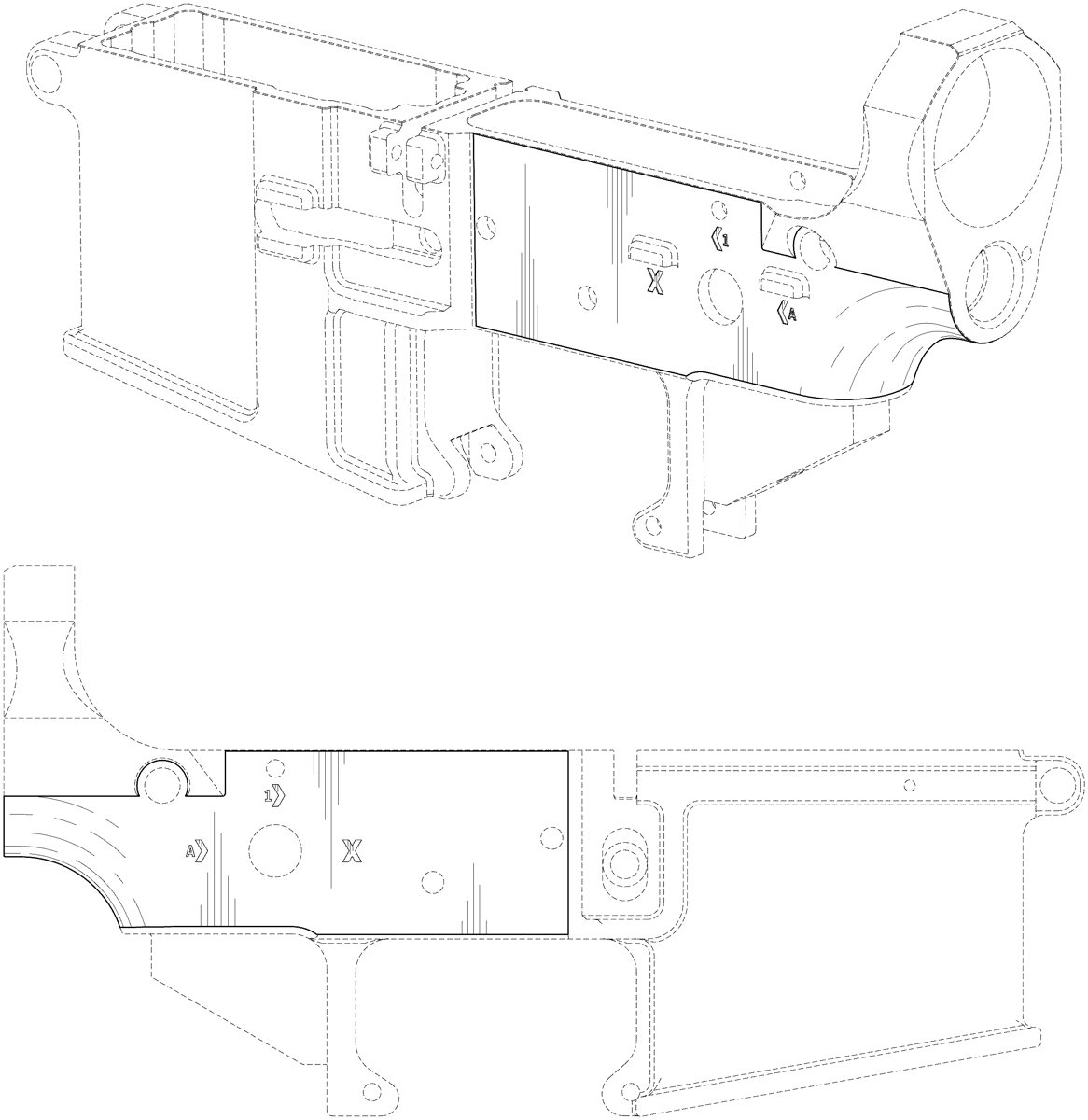 The patent grants protection for a specific ornamental design of a firearm lower receiver. It focuses on the aesthetic aspects of the receiver’s appearance as depicted in the provided illustrations.