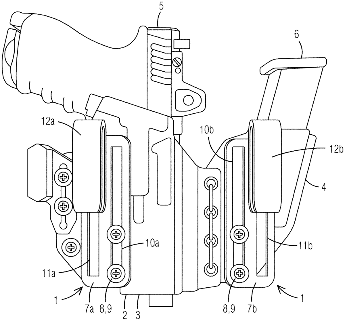 - An adjustable clip system securable to a sheath or a holster for allowing a height of the sheath or the holster to be adjusted in relation to a fixed attachment point on a wearer, the adjustable clip system comprising: a channeled member having a first opening and a second opening adjacent to the first opening wherein the channeled member is attachable to the sheath or the holster; at least one compressible spacer and at least one adjustment fastener; at least one attachment fastener extending through the first opening and secured to an opening in the sheath or the holster for securing the channeled member to the sheath or the holster; and at least one U-shaped clip being slidably attached to the second opening to allow the U-shaped clip to slide in an upward direction and a downward direction in relation to at least one first opening, the U-shaped clip remaining stationary with respect to the wearer wherein the at least one adjustment fastener extends through an opening in the U-shaped clip and through the compressible spacer. a channeled member having a first opening and a second opening adjacent to the first opening wherein the channeled member is attachable to the sheath or the holster; at least one compressible spacer and at least one adjustment fastener; at least one attachment fastener extending through the first opening and secured to an opening in the sheath or the holster for securing the channeled member to the sheath or the holster; and at least one U-shaped clip being slidably attached to the second opening to allow the U-shaped clip to slide in an upward direction and a downward direction in relation to at least one first opening, the U-shaped clip remaining stationary with respect to the wearer wherein the at least one adjustment fastener extends through an opening in the U-shaped clip and through the compressible spacer.