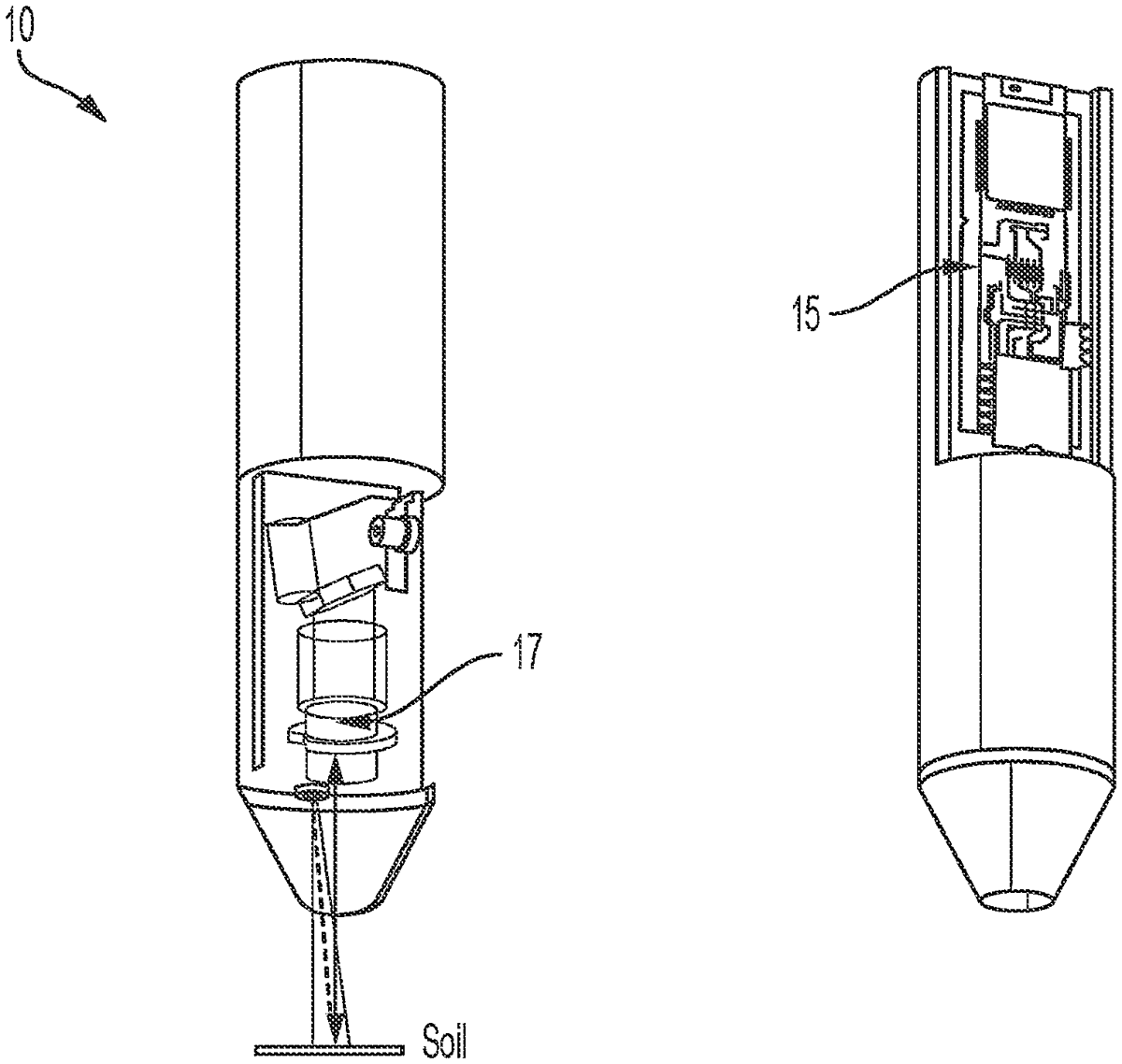 The patent describes a deployable micro-spectrometer designed in a bullet-like form that utilizes a super capacitor and a burst-mode light source to analyze and transmit spectral data from target materials. This innovative device can be launched from various platforms, including firearms and satellites, and is intended to be both portable and disposable.