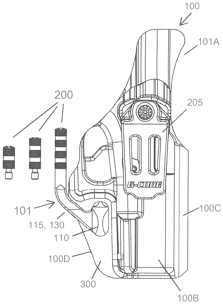 - An adjustable tension device for use with a holster comprising: a base, a fixed arm having a first member and a second member, the first member and the second member separated by a bend portion, and an extension arm, wherein the first member of the fixed arm extends in a diagonal direction away from the base up to the bend portion, wherein the second member extends in a direction that is offset from the orientation of the first member, wherein the second member of the fixed arm is removably coupled to the extension arm. a base, a fixed arm having a first member and a second member, the first member and the second member separated by a bend portion, and an extension arm, wherein the first member of the fixed arm extends in a diagonal direction away from the base up to the bend portion, wherein the second member extends in a direction that is offset from the orientation of the first member, wherein the second member of the fixed arm is removably coupled to the extension arm.