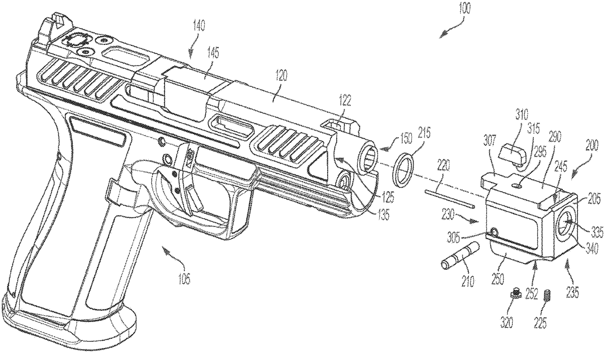 The patent describes a firearm with a barrel featuring an alignment key and a muzzle accessory designed to securely attach to the barrel using an alignment groove and a locking pin. This configuration ensures that the muzzle accessory is rotationally fixed relative to the firearm’s barrel for improved stability and performance.