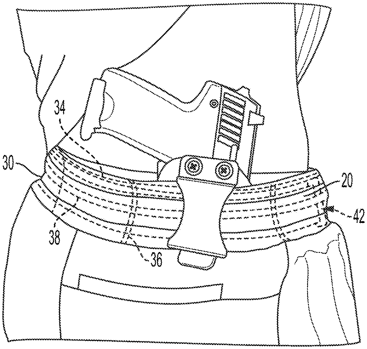 The patent describes an article of clothing featuring a waistband designed to securely carry objects, incorporating channels for an elastic band and drawstrings, as well as fabric loops for a belt assembly. This innovative design enhances the functionality of the clothing by allowing for secure carrying options while maintaining comfort and adjustability.