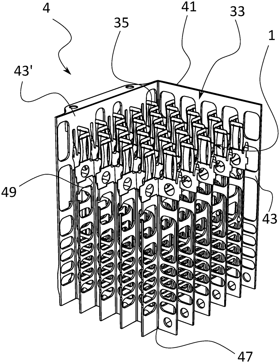- A spring arrangement in a countermeasure magazine, said spring arrangement comprising a plurality of elements, wherein each one of said elements has a base portion and a plurality of spring portions extending from a first edge of said base portion, wherein said spring portions of each element are distributed along a length of said base portion, wherein said elements comprise mating connection means such that said elements are connected to each other, wherein said base portions comprise magazine connectors arranged at two opposite ends of each one of said base portions and wherein at least one of said magazine connectors comprises a locking mechanism such that said spring arrangement is locked in place in relation to a countermeasure magazine. wherein each one of said elements has a base portion and a plurality of spring portions extending from a first edge of said base portion, wherein said spring portions of each element are distributed along a length of said base portion, wherein said elements comprise mating connection means such that said elements are connected to each other, wherein said base portions comprise magazine connectors arranged at two opposite ends of each one of said base portions and wherein at least one of said magazine connectors comprises a locking mechanism such that said spring arrangement is locked in place in relation to a countermeasure magazine.