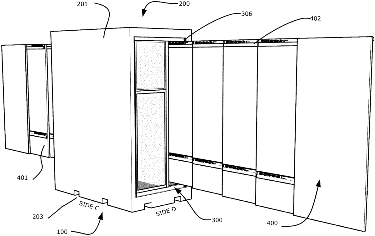 - A system comprising: a series of mobile crates, each crate configured to deploy independently from a pre-existing fixed structure, each crate comprising: a pallet-type base with forklift channels, and a removable, non-collapsible internal cage with a compartmented storage area above the base, comprising a first compartment and a second compartment, wherein the first compartment is configured to accommodate a predefined amount of equipment prior to insertion of the cage within the crate, and wherein the second compartment holds a series of panels, separated from the predefined amount of equipment in the compartmented storage area, wherein each of the series of panels connects to an adjacent panel, and the series of panels deploys from the storage area by telescoping and/or articulating outward from the storage area to form an extended protective barrier, and wherein the extended protective barrier of a first crate in the series of crates connects to an extended protective barrier of a second crate in the series of crates to form an extended protected perimeter. a series of mobile crates, each crate configured to deploy independently from a pre-existing fixed structure, each crate comprising: a pallet-type base with forklift channels, and a removable, non-collapsible internal cage with a compartmented storage area above the base, comprising a first compartment and a second compartment, wherein the first compartment is configured to accommodate a predefined amount of equipment prior to insertion of the cage within the crate, and wherein the second compartment holds a series of panels, separated from the predefined amount of equipment in the compartmented storage area, wherein each of the series of panels connects to an adjacent panel, and the series of panels deploys from the storage area by telescoping and/or articulating outward from the storage area to form an extended protective barrier, and wherein the extended protective barrier of a first crate in the series of crates connects to an extended protective barrier of a second crate in the series of crates to form an extended protected perimeter. a pallet-type base with forklift channels, and a removable, non-collapsible internal cage with a compartmented storage area above the base, comprising a first compartment and a second compartment, wherein the first compartment is configured to accommodate a predefined amount of equipment prior to insertion of the cage within the crate, and wherein the second compartment holds a series of panels, separated from the predefined amount of equipment in the compartmented storage area, wherein each of the series of panels connects to an adjacent panel, and the series of panels deploys from the storage area by telescoping and/or articulating outward from the storage area to form an extended protective barrier, and wherein the extended protective barrier of a first crate in the series of crates connects to an extended protective barrier of a second crate in the series of crates to form an extended protected perimeter. wherein the first compartment is configured to accommodate a predefined amount of equipment prior to insertion of the cage within the crate, and wherein the second compartment holds a series of panels, separated from the predefined amount of equipment in the compartmented storage area, wherein each of the series of panels connects to an adjacent panel, and the series of panels deploys from the storage area by telescoping and/or articulating outward from the storage area to form an extended protective barrier, and wherein the extended protective barrier of a first crate in the series of crates connects to an extended protective barrier of a second crate in the series of crates to form an extended protected perimeter.
