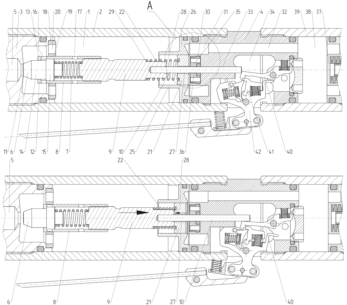The patent describes a compressed gas supply device for air rifles that features a pressure chamber, a valve mechanism, and a piston system to enhance performance by ensuring rapid response and low gas consumption. Key components include a cylindrical body, a trigger mechanism, and a valve spring that allows for the movement of the valve and piston, optimizing the air rifle’s operation.