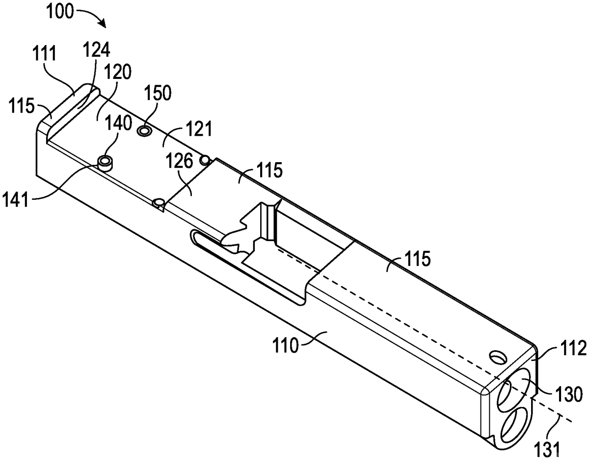 - A handgun optic mounting system, comprising: a handgun slide having a proximal end, a distal end, a first half disposed at the proximal end, a second half disposed on the distal end, and an upper surface, the handgun slide comprising a barrel aperture having a barrel central axis; an optic recess disposed on the handgun slide, the optic recess having a recessed surface disposed lower than the upper surface, the recessed surface forming a recess plane anteriorly tilted wherein the recess plane comprises a recessed angle with at least one of the upper surface or the barrel central axis, wherein the recessed angle comprises a value between and inclusive of 5 to 25 minutes of angle; and a plurality of threaded apertures extending into the recessed surface, the plurality of threaded apertures comprising a first aperture and a second aperture, wherein the first aperture comprises a single mounting protrusion extending above the recessed surface and the second aperture terminates flush with the recessed surface, wherein the first aperture further comprises a first diameter and the second aperture comprises a second diameter wherein the second diameter is greater than the first diameter. a handgun slide having a proximal end, a distal end, a first half disposed at the proximal end, a second half disposed on the distal end, and an upper surface, the handgun slide comprising a barrel aperture having a barrel central axis; an optic recess disposed on the handgun slide, the optic recess having a recessed surface disposed lower than the upper surface, the recessed surface forming a recess plane anteriorly tilted wherein the recess plane comprises a recessed angle with at least one of the upper surface or the barrel central axis, wherein the recessed angle comprises a value between and inclusive of 5 to 25 minutes of angle; and a plurality of threaded apertures extending into the recessed surface, the plurality of threaded apertures comprising a first aperture and a second aperture, wherein the first aperture comprises a single mounting protrusion extending above the recessed surface and the second aperture terminates flush with the recessed surface, wherein the first aperture further comprises a first diameter and the second aperture comprises a second diameter wherein the second diameter is greater than the first diameter.