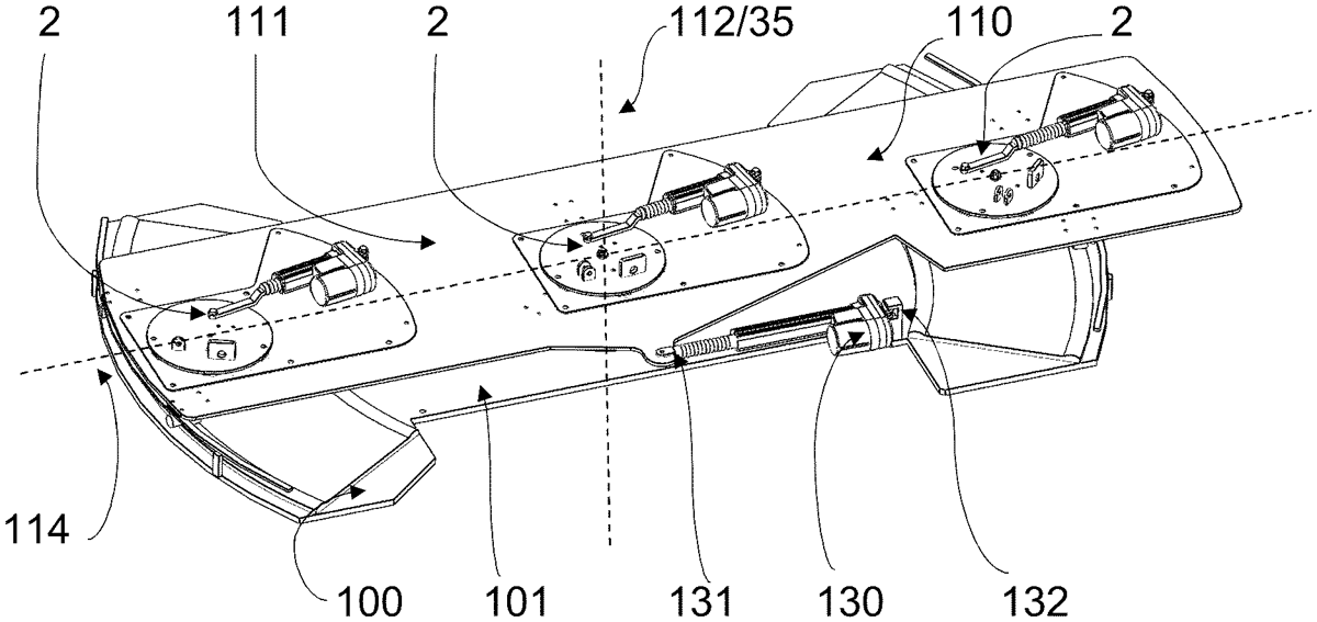 - A target throwing system for sport shooting comprising, successively along a direction of alignment, a first target throwing machine, a second target throwing machine, and a third target throwing machine, each of the first machine, the second machine and the third machine comprising: a throwing unit movable in rotation relative to a base, a throwing arm movable in rotation relative to the throwing unit, a throwing unit movable in rotation relative to a base, a throwing arm movable in rotation relative to the throwing unit, wherein the base is a base common to the first target throwing machine, the second target throwing machine and the third target throwing machine, and in that it includes a stand on which the common base is movable in rotation along a base axis, further wherein each amongst the first machine, the second machine and the third machine is configured to respectively sweep a first angular sector of deflection, a second angular sector of deflection and a third angular sector of deflection, said sectors being different from each other.