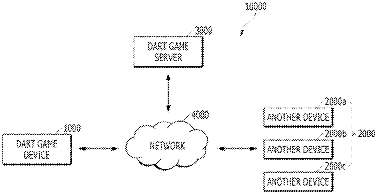 The patent describes a method for a dart game device to enhance gameplay by displaying images based on play-related data from multiple devices participating in a session. It involves receiving non-image play result data, comparing it with stored data, and determining whether to display a visual representation of a player’s dart throw.
