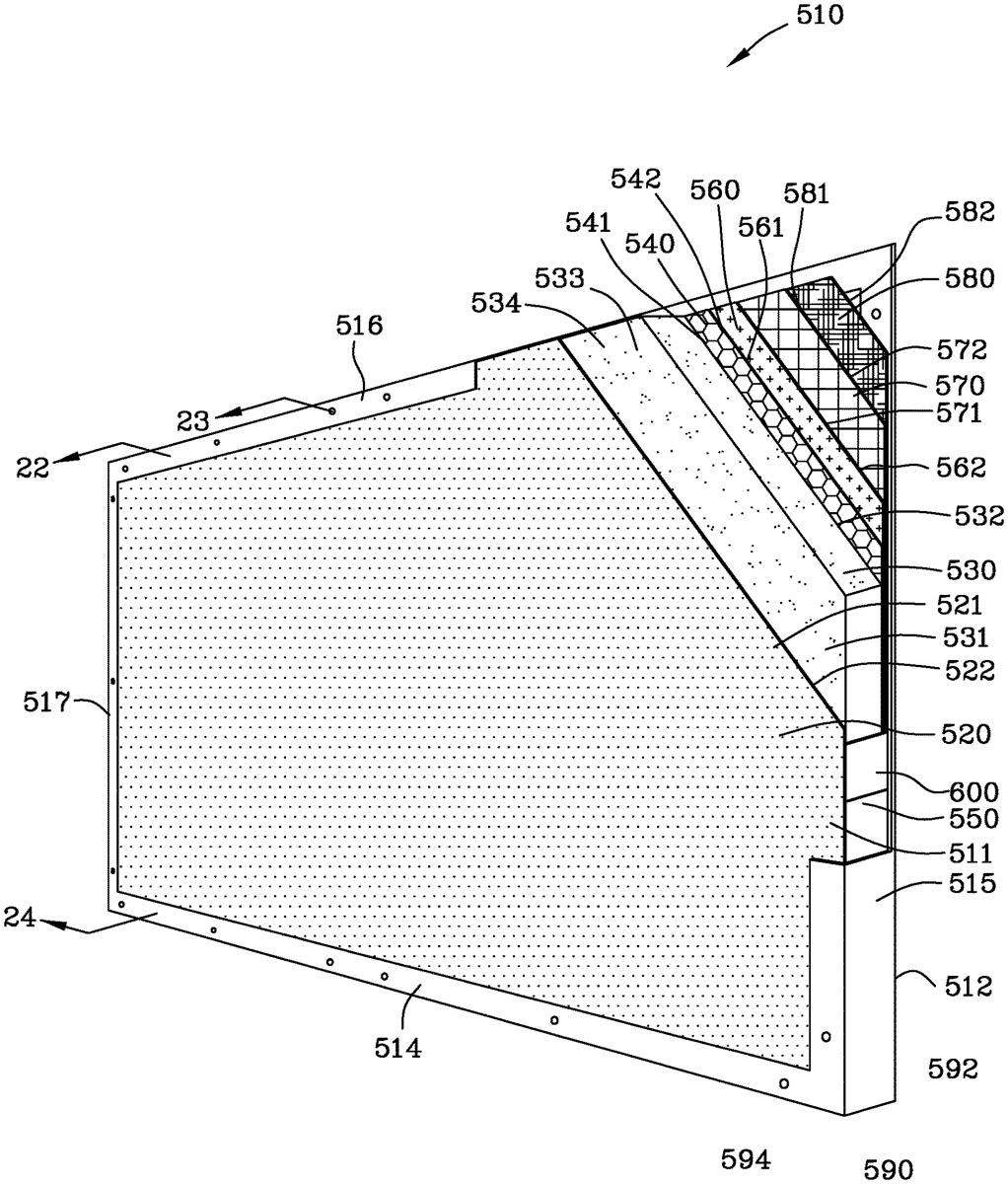 The patent describes a ballistic sound reducing panel designed to absorb sound while providing protection against ballistic projectiles and shrapnel. It features multiple layers, including a porous front sheet, a ballistic plate, a ricochet plate, and a spall reducing membrane, all contained within a protective frame.