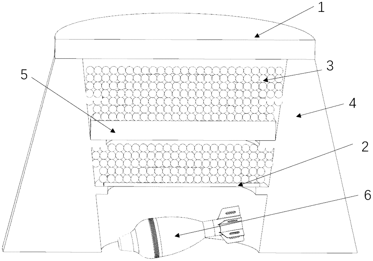 The patent describes an intrinsic-safety explosive disposal and protection device designed to prevent secondary damage during explosions while efficiently absorbing shock wave energy. It features an explosion-proof drum structure with adjustable components, including a top cover and an energy absorption plate, all made from flexible composite materials.