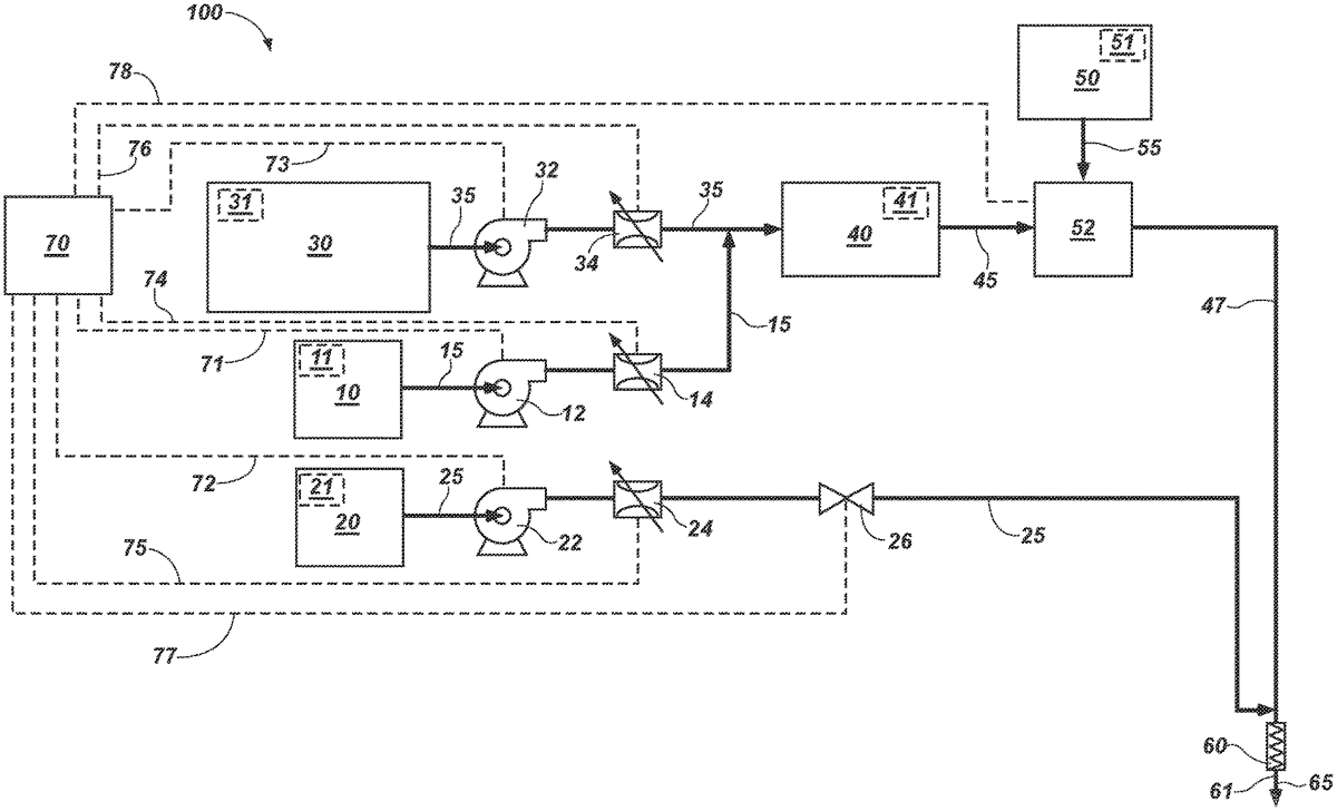 This patent describes a system for delivering explosives with adjustable energy levels by using a control system to manage the flow of a gassing agent into an explosive. The system aims to create a sensitized explosive that can be tailored to specific density profiles within a blasthole.