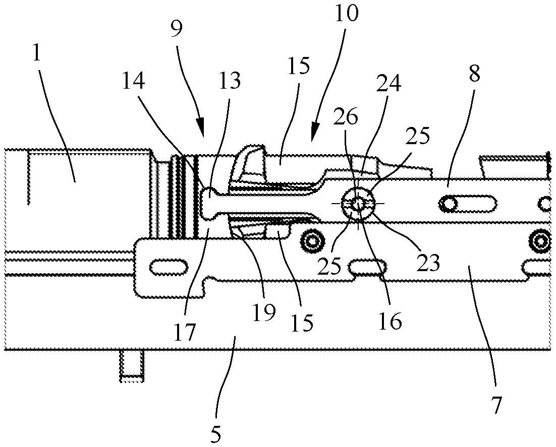 The patent describes a bolt head for a breech block that features a base element and a breech face, with an annular bezel made of multiple detachable parts. Additionally, it includes an inwardly curved guide surface on the back of the base element to assist in guiding pivotable locking elements.
