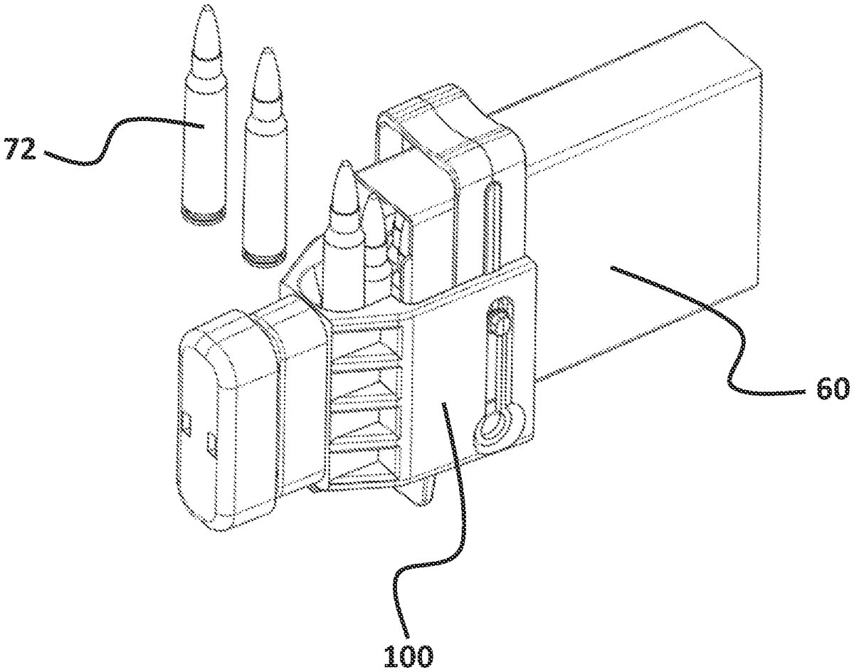 An accessory facilitates loading and unloading of cartridges into a firearm magazine and includes a main body having a top end with a top opening, a bottom end with a bottom opening, a wall portions extending between the top and bottom ends and defining therebetween a body cavity in communication with the top and lower openings and also defining a front opening in communication with the body cavity. A first portion of the body cavity can receive a cartridge from the front opening and a second portion of the body cavity can receive an open end of a portion of a firearm magazine from the bottom opening. A thruster is movably coupled to the main body and mounted to the main body above the top end, and includes a plunger which is movable into and out of the first portion of the body cavity through the top opening.