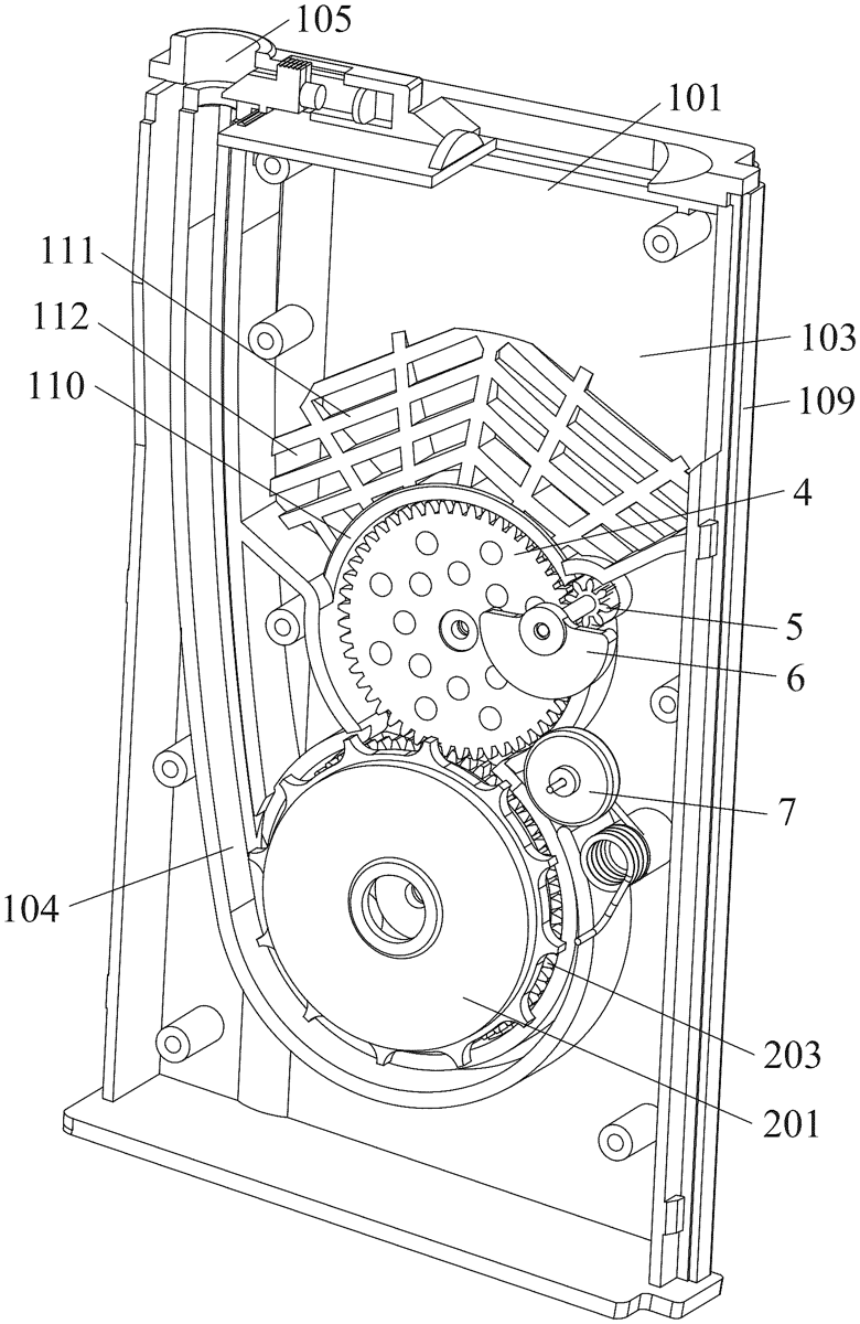 A mechanical magazine, including a casing and a mechanical driver. The casing includes an ammunition inlet, an ammunition outlet, and an ammunition passage extending from the ammunition inlet to the ammunition outlet. The mechanical driver is disposed on one side of the casing and is configured to drive ammunition pills to move from the ammunition inlet to the ammunition outlet. The mechanical driver includes a rotation disc and an energy storage unit; the rotation disc is rotationally connected to the casing to push the ammunition pills to move along the ammunition passage; the energy storage unit is disposed on the rotation disc and is subjected to elastic deformation to store or release energy when the rotation disc rotates relative to the casing; when the rotation disc rotates in a direction towards the ammunition inlet, the energy storage unit is compressed to save energy.