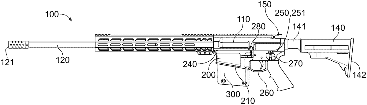 The present disclosure provides example embodiments related to modifications for an AR-10 style firearm. In one embodiment, the AR-10 style firearm comprises modifications that enable the AR-10 style firearm to fire cartridges having a length between 73.66 mm and 91.44 mm, without increasing the overall length and/or weight, as compared to a standard AR-10 style firearm. The modified AR-10 style firearm may comprise, for example, modifications to the upper receiver, lower receiver, bolt carrier, magazine well, charging handle, firing pin, buffer tube weight, and/or the magazine.