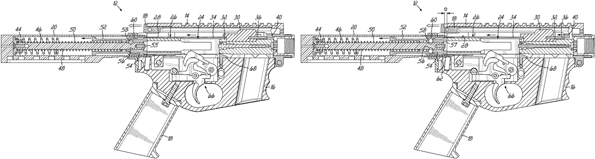 A delayed blowback system for a firearm is provided. The system includes a bolt with two detent members operatively coupled within the bolt, each detent member comprising a detent. The system further includes a recoil spring guide rod having two matching recesses on opposing sides of the recoil spring guide rod, wherein the bolt and the two detent members are coupled to and slidable along the recoil spring guide rod between a firing position and a recoil position. The firing position includes the detents resting in the matching recesses on the recoil spring guide rod in response to a round being fired, the bolt moves back and pushes the detent members back, wherein by nature of a geometry of the detents and the matched recesses, the detent members outward in opposite directions and perpendicular sliding along the recoil spring guide rail in the recoil position to complete a recoil cycle.