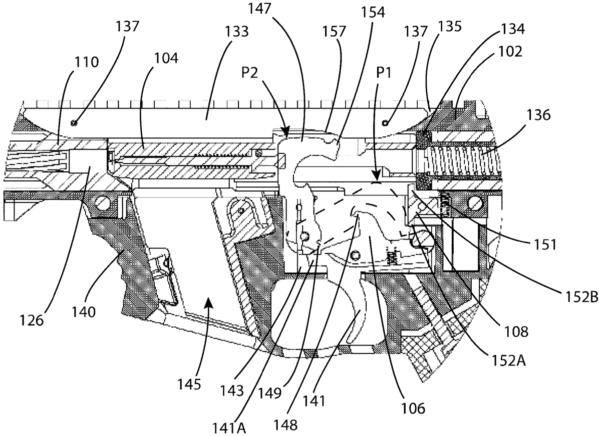 A breech release for a shotgun includes a push button, a return spring, a spring retainer, a threaded steel rod, and a release slide. the return spring is located between the push button and spring retainer. when the breech release engages with a breech, the breech release bisects an outer breech which hinged an inner breech, holding the breech closed in its default position. When the button is depressed, the button moves the slide out of the inner breech, allowing the breech to open.