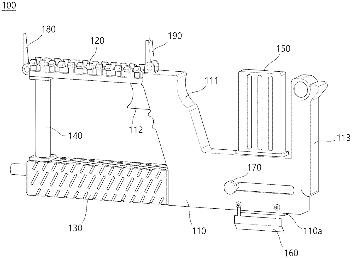 The present invention relates to a bullpup-type gun with a barrel positioned at the bottom, in which the bullpup-type gun basically has a bullpup-type shape, and a barrel, a loading handle, and a shell discharge part are provided at a lower side of a body part, which may prevent burns and injuries to a user caused by a configuration in which a shell is discharged upward, and a height difference between a front sight and a rear sight may solve a problem with an aiming degree caused by a configuration in which the barrel is disposed at the bottom.