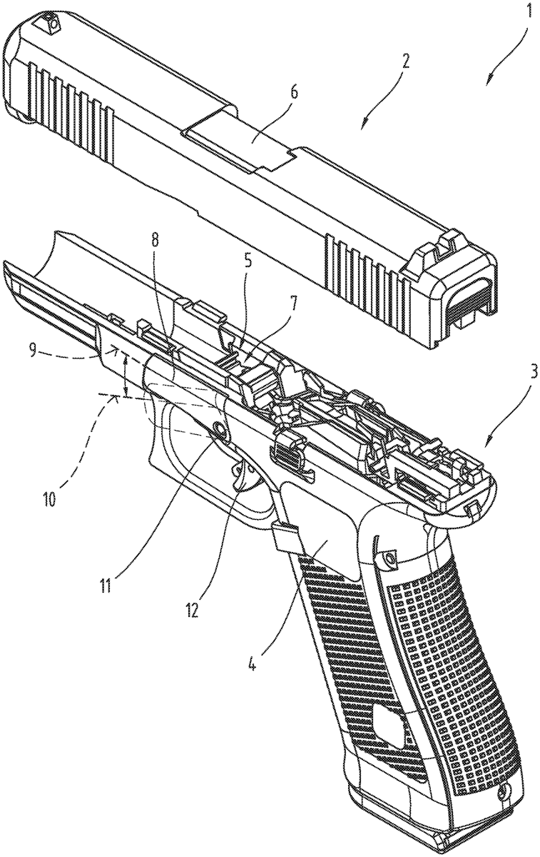 A receiver assembly for a handgun. The receiver assembly includes a receiver having a magazine well, a locking device having a locking lever for actuating the locking device, a control block accommodated in the receiver, a trigger pivotable in the receiver and about a trigger axis, a sear bar coupled to the trigger, a locking bar having a guide lug, and a lowering component accommodated in the control block, which has a bar guide slot formed therein. The sear bar extends to the control block and includes a guide bracket. The locking bar interacts with the locking device. The lowering component is displaceable for removing the slide assembly from the receiver assembly. The lowering component includes a control window and a guide link. The guide bracket is guided in the control window. The guide lug protrudes into the guide link and through a bar guide slot of the control block.
