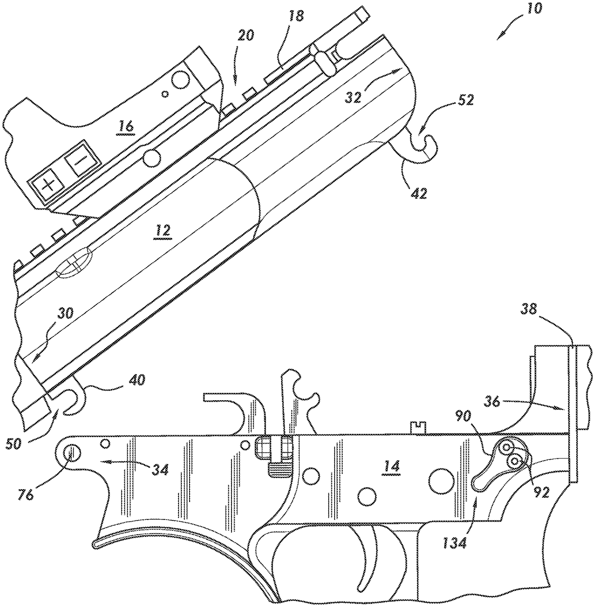 A firearm platform and method of connecting an upper receiver to a lower receiver. The upper receiver has a pivot lug and a takedown lug with perimeter openings in opposite directions. The lower receiver has a locking member that pushes against the takedown lug which causes the upper receiver to displace forward. As a result of the forward displacement, a pivot pin in the lower receiver exerts an opposing force against the pivot lug. The locking member is displaced between a locked and unlocked position through a lever located on an exterior surface of the lower receiver. When the locking member is in the locked position, the lower receiver and uppers receiver form a connection that is tight and free from slop.