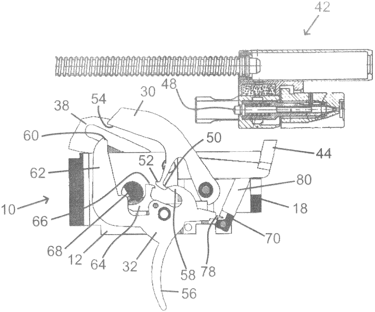 A trigger mechanism having a hammer, a trigger member, movable ejector lever, and locking member. The trigger member being forced to the set position by the hammer during rearward pivoting. A locking member is adapted to move between a first position at which the locking member mechanically blocks the trigger member from moving to the released position and a second position at which the locking member does not mechanically block the trigger member allowing the trigger member to be moved to the released position. The locking member is spring biased toward the first position and moved against the spring bias to the second position by contact from the movable ejector lever during forward movement of the bolt carrier as the bolt carrier reaches a substantially in-battery position.