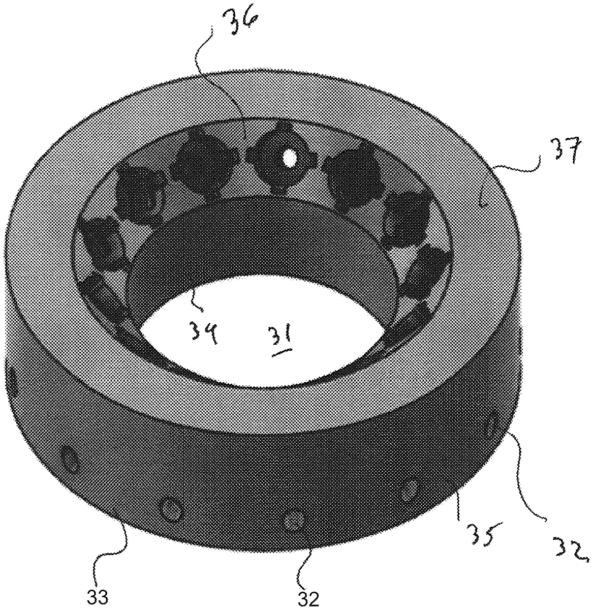 A radially firing munition defining a longitudinal axis and comprising a nonfragmenatary hollow collar having an inner surface and an outer surface opposed thereto with a first plurality of ports extending therebetween in a substantially radial direction. An ammunition is disposed in each port of the first plurality of ports and oriented outwardly from the longitudinal axis. An ignition source is provided for expelling each ammunition from the collar in response to an ignition signal.