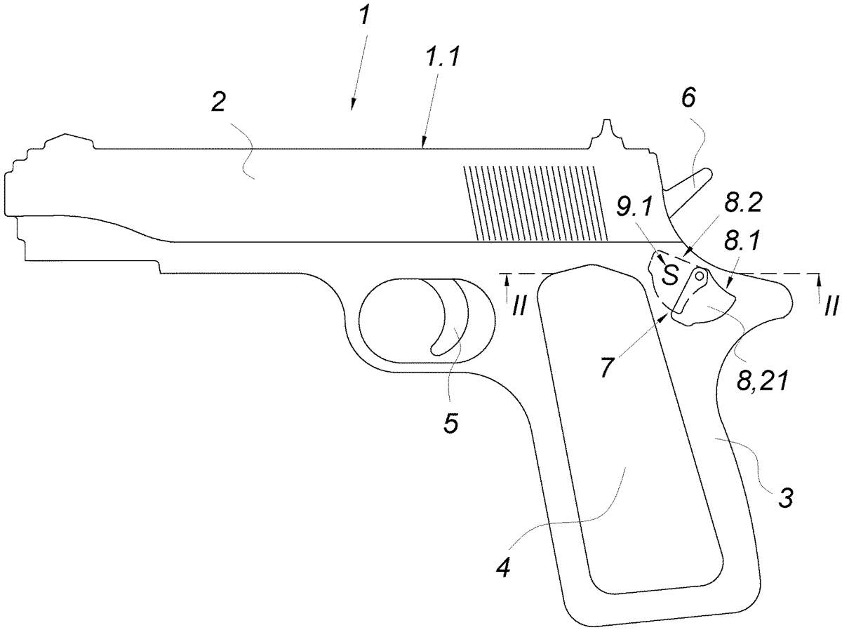 A firearm is proposed, with an optical safety marking ( 9.1, 9.2, 9.3, 9.4, 9.5, 9.6 ) provided on the firearm ( 1 ) for clearly indicating the safety state of the firearm ( 1 ). In order to increase the safety of the firearm ( 1 ), it is proposed for the safety marking ( 9.1, 9.2, 9.3, 9.4, 9.5, 9.6 ) to be embodied as phosphorescent and/or fluorescent and/or radioluminescent and/or bioluminescent.