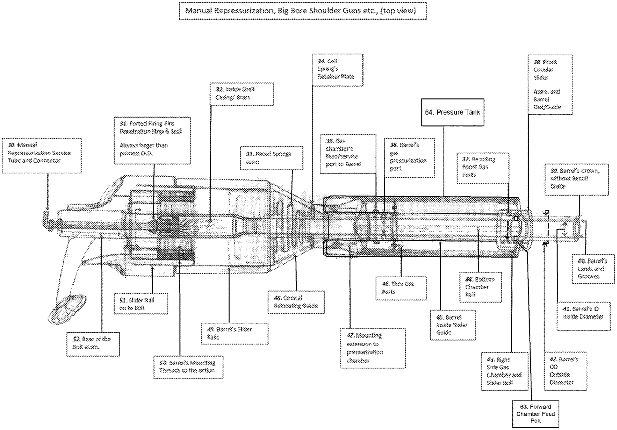 A supplemental propulsion system for a weapon used to fire a projectile includes a barrel and chamber to hold a projectile round. A translating pressure tank surrounds a portion of the barrel, and the pressure tank is configured to translate along the barrel. A recoil spring assembly includes a spring and a pressure plate downstream of the chamber for holding the projectile round. The pressure tank is coupled to the pressure plate such that the spring is configured to stretch upon firing of the projectile and translate the pressure tank along a length of the barrel. The barrel includes a first port configured to selectively align with a first tank port during translation, for the discharge of pressurized gas from the pressure tank. The discharge of pressurized gas occurs rearward of the projectile as it passes through the barrel after firing.