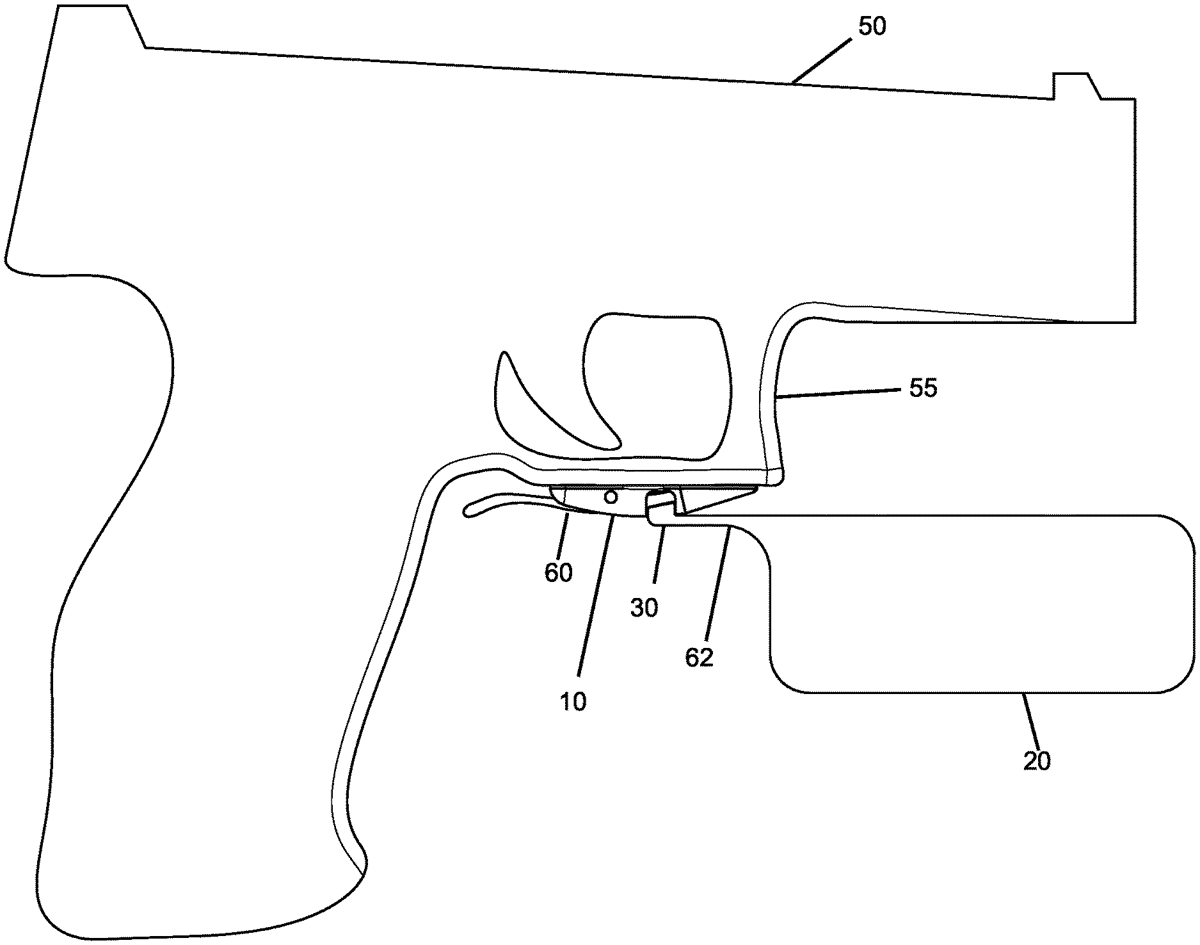 A retention device for a firearm includes a latching lever mountable to a trigger guard of the firearm, and a latching receiver configured to receive and retain the firearm. The latching lever is pivotable about a first pivot point between a first engaging position and a second release position. The latching receiver is configured to receive and retain the firearm, and includes a latch pivotable about a second pivot point between a firearm engaging position and a firearm release position. The latch has a protrusion configured to engage and retain the firearm when the latching lever is in the first engaging position.