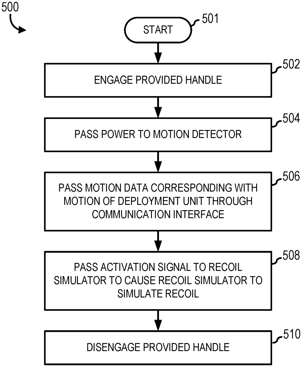 A conducted electrical weapon (“CEW”) may comprise a handle and a deployment unit. A CEW may be adapted for use in a simulation system comprising a simulator and a display. A simulation deployment unit may be used with a handle to adapt the CEW for use in the simulation system. The simulation deployment unit may be configured to detect motion data corresponding with at least one of a change in position, a change in orientation, and an initial orientation of the CEW. The simulation deployment unit may be configured to pass the motion data to the handle so the motion data may be transmitted to a simulator via a communication circuit of the handle. The simulation deployment unit may require power from the handle to operate, and the handle may require motion data provided by the simulation deployment unit so that the CEW may be used in the simulation system.
