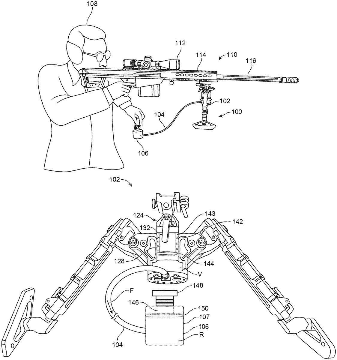 A firearm support includes a housing, two or more legs, a column, a firearm mount, and a remote actuator. The housing including a first hydraulic cylinder. The two or more legs are pivotally coupled to and extending from the housing. The column resides at least partially within the first hydraulic cylinder. The firearm mount supports a firearm and is attached to a distal end of the column opposite the first hydraulic cylinder. The remote actuator is fluidly coupled to the first hydraulic cylinder through a hydraulic hose. The remote actuator adjusts a height of the column by moving hydraulic fluid through the hydraulic hose in response to rotation of a height adjustment knob on the remote actuator.