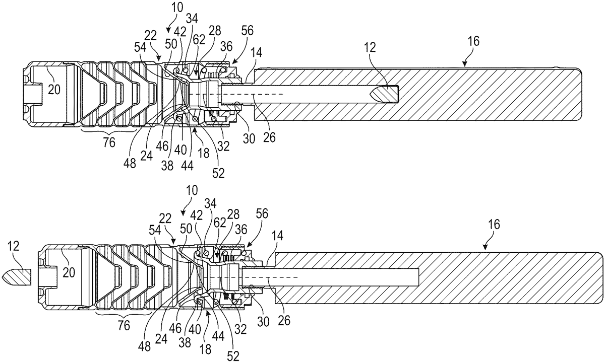 A suppressor connector has distal end threads operable to couple the suppressor connector to a suppressor device and proximal end threads operable to couple to a muzzle of a firearm. At least one flexible pawl is coupled to the suppressor connector and has a free-floating proximal end that terminates beyond the proximal thread end of the set of proximal end threads of the suppressor connector and has an engagement face on the free-floating proximal end. At least one outer hood has a distal end coupled to the suppressor connector proximate to the distal end of the flexible pawl and a free-floating proximal end that at least partially covers the free-floating proximal end of the flexible pawl and that extends beyond and substantially parallel to the free-floating proximal end of the flexible pawl.