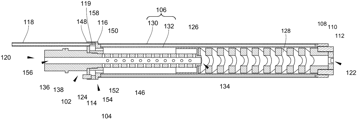 A firearm suppressor includes a first section along an axis; a second section along the axis downstream of the first section, the second section having a second section twist rate; a third section along the axis downstream of the second section, the third section having a third section twist rate, the third section twist rate greater than the second section twist rate; and a fourth section along the axis downstream of the third section, the fourth section having a fourth section twist rate, the fourth section twist rate greater than the third section twist rate.